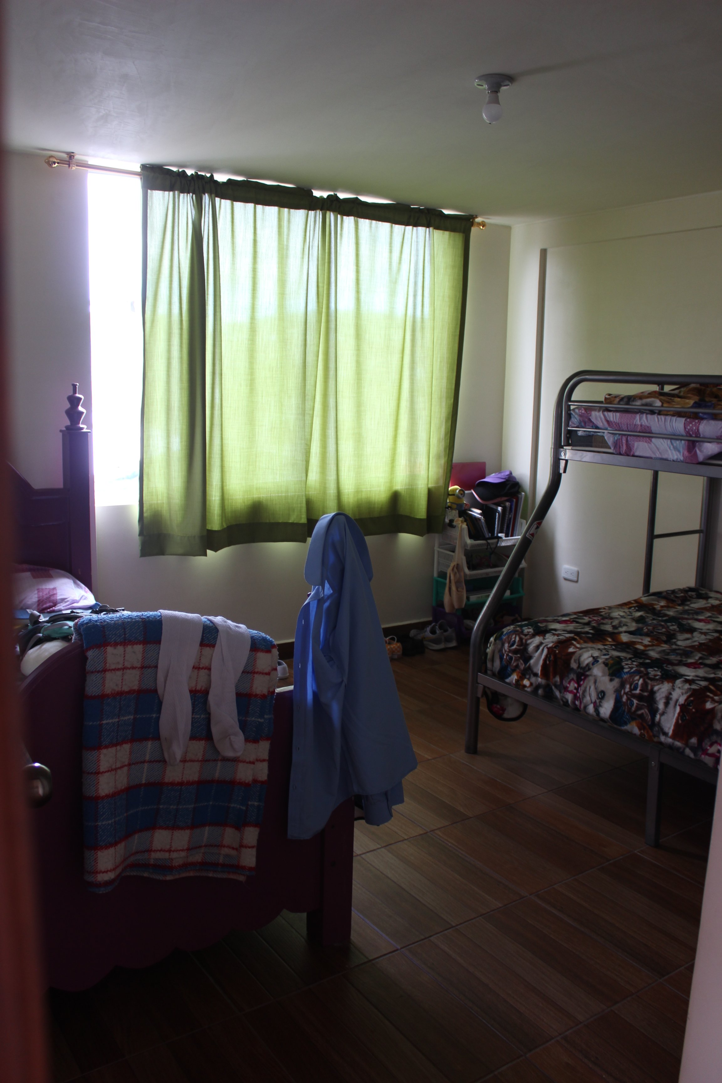 Part of the lower level is currently being rented out, another part contains sewing machines and thread, and the outer area is usually infested with playing children. The second floor belongs to my abuelos and the youngest son, my tío Gabriel. The next floor is occupied by my tía Sole and tío Diego and their children Noemy, Paula, and Elías. The fourth floor is ours and was finished up just this year, along with the terrace.